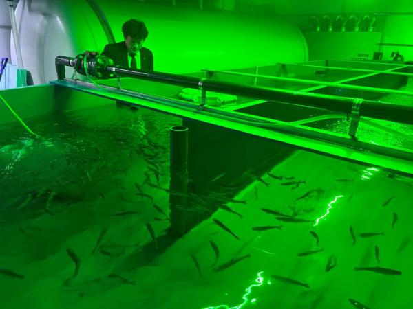 ベニザケが育つ20㌧水槽の全景